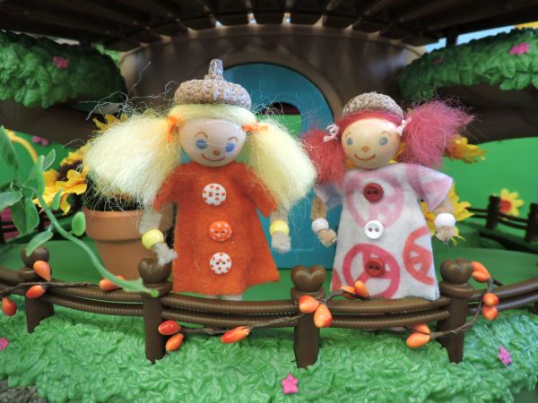 Acornia and Oma are very pleased with the Fall decor Clementine and Rosalie have placed around the Treehouse balcony.
