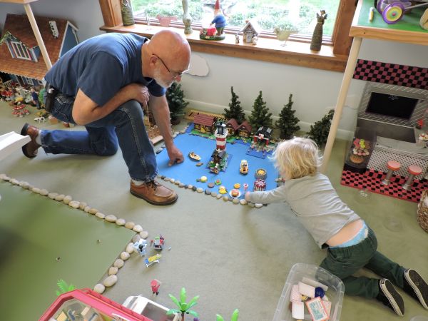 Abe spent most of his playtime in Hittyville Village exploring my childhood homestead. That made my heart so very happy!